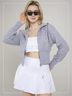 Толстовка на молнии укороченная с капюшоном
