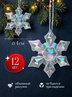 Новогодние игрушки на елку снежинка радужная 4 см. 12 штук