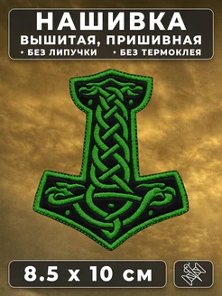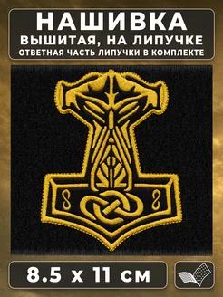 Нашивка с вышивкой Молот Тора, Мьёльнир - 8.5 x 10 см