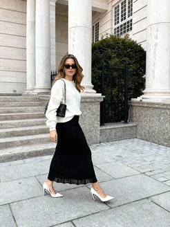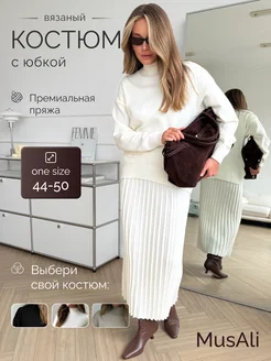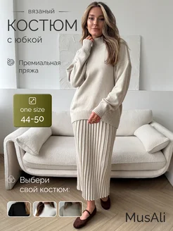Костюм женский вязаный с юбкой плиссе