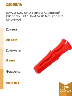 Универсальный дюбель UNO красный 6x28мм, UNO-K-06, 200шт