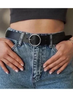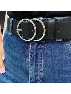 Черный ремень с двойной круглой пряжкой 3,2 см