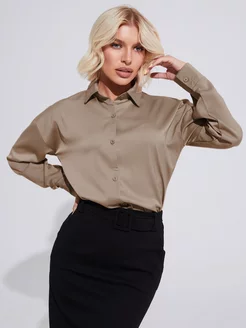 Рубашка оверсайз с длинным рукавом атласная блузка