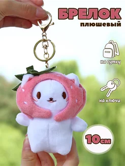 Плюшевый мягкий брелок котик в шапочке на сумку