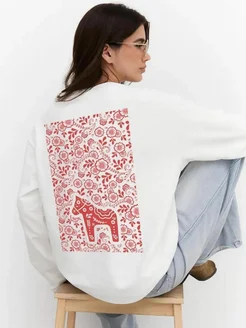 Лонгслив оверсайз с принтом Лошадь Русский стиль