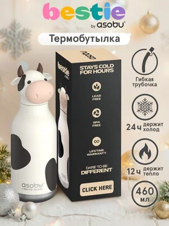 Термобутылка для воды с трубочкой Bestie Корова, 460 мл