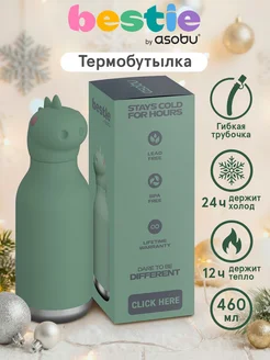 Термо бутылка для воды с трубочкой Bestie Динозавр, 460 мл