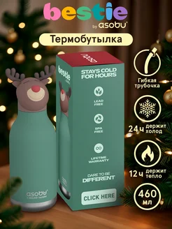 Термобутылка для воды с трубочкой Bestie Олень, 460 мл