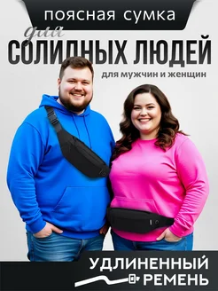 Поясная сумка черная для крупных людей с удлиненным ремнем