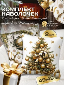 Наволочки новогодние 45х45 декоративные на молнии набор 2 шт