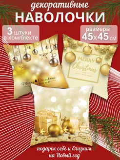 Наволочки новогодние 45х45 декоративные на молнии набор 3 шт