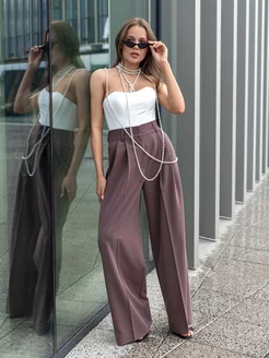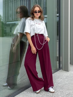 Брюки палаццо классические нарядные для офиса y2k бургунди