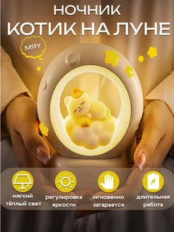 Ночник-светильник детский светодиодный "Котик на Луне"