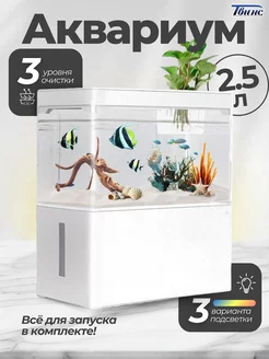 Аквариум для рыбок с аэрацией и фильтром 2 литра