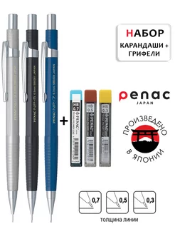Карандаши механические NP 0.3, 0.5, 0.7 мм с грифелями