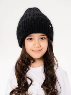 шапка вязаная детская с отворотом ангора утепленная