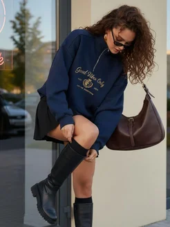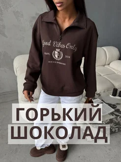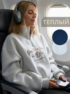 Свитшот с начесом полузамок оверсайз на молнии y2k