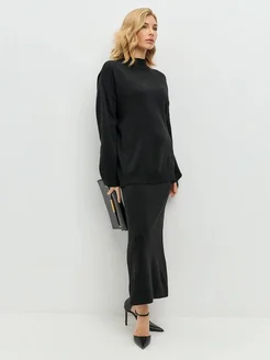 Костюм женский с юбкой трикотажный вязаный теплый с двойка