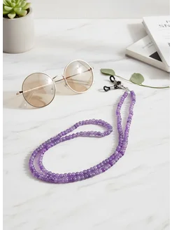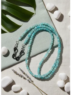 Шнурок цепочка для очков из голубых каменных бусин женский