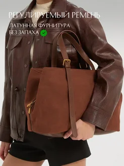 Сумка тоут большая а4 три отделения на молнии замшевая