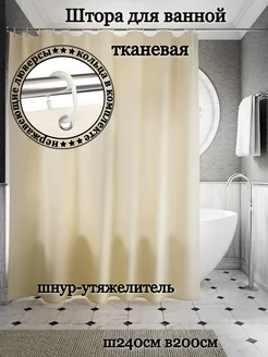 Штора для ванной тканевая бежевая, Ш240хВ200см, с кольцами
