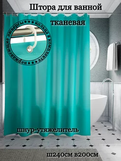 Штора для душа тканевая бирюзовая, Ш240хВ200см, с кольцами