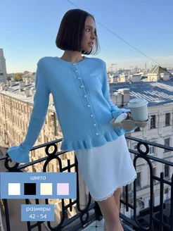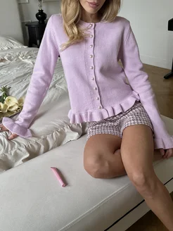 Кардиган приталенный на пуговицах вязаный укороченный