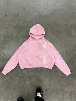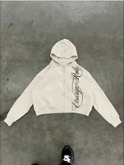 Зип худи укороченное с принтом и молнией дрейн y2k