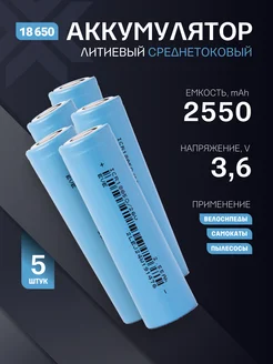 Аккумуляторы 18650, литий-ионные АКБ 3.6V 2.55Ач 7.65A 5 шт