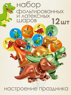 Набор шаров фольгированных и латексных Динозавры 12 штук