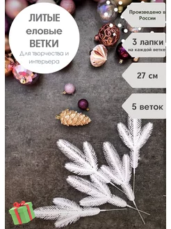 Ветки хвойные еловые для декора искусственные литые 5 шт