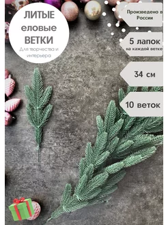 Ветки хвойные еловые для декора искусственные литые 10 шт