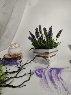 Искусственное растение Лаванда в деревянном кашпо
