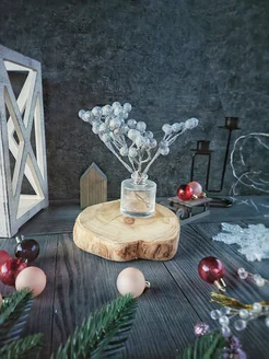 Глиттерные ягоды на ветке для декора и поделок серебро