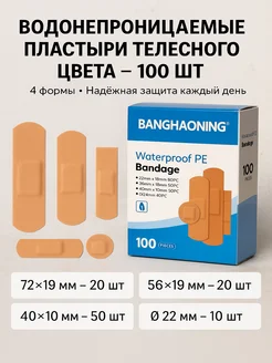 Пластырь телесный водонепроницаемый — 100 шт 4 формы
