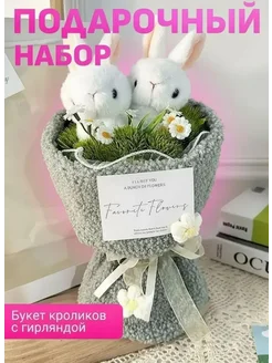 Подарочный набор букет кроликов с гирляндой девочке