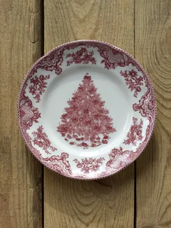 Тарелка новогодняя в винтажном стиле 21 см в фарфор