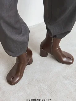 Ботильоны таби кожаные ботинки на каблуке коричневые