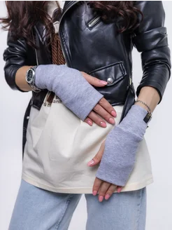 Митенки трикотажные короткие без пальцев grey