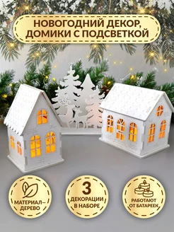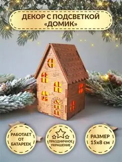 Декор с подсветкой "Домик", праздничное украшение из дерева