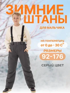 Штаны зимние для мальчика на лямках утепленные мембрана