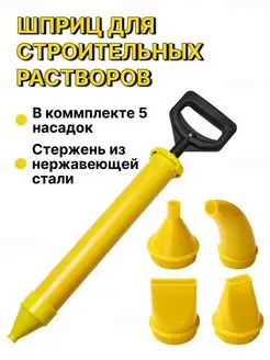 Шприц для строительных, цементных растворов с 5-ю насадками