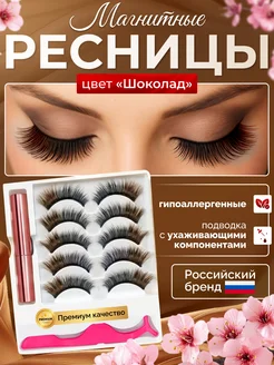 Накладные ресницы коричневые на магнитах с подводкой гипоалл…