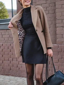 Приталенное пальто пиджак с леопардовыми пуговицами