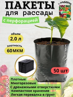 Пакеты для рассады с дренажными отверстиями 2 л 50 шт