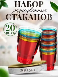 Пластиковые стаканы одноразовые 200 мл для праздника 20 штук