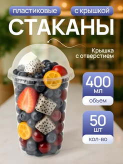 Одноразовые пластиковые стаканы с крышкой 400 мл