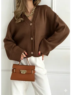 Кардиган укороченный на пуговицах оверсайз коричневый
