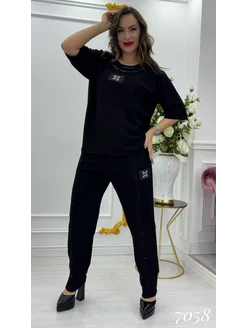 Спортивный костюм двойка со стразами с капюшоном с карманами