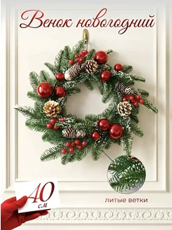 Венок новогодний на дверь еловый с шишками и ягодами